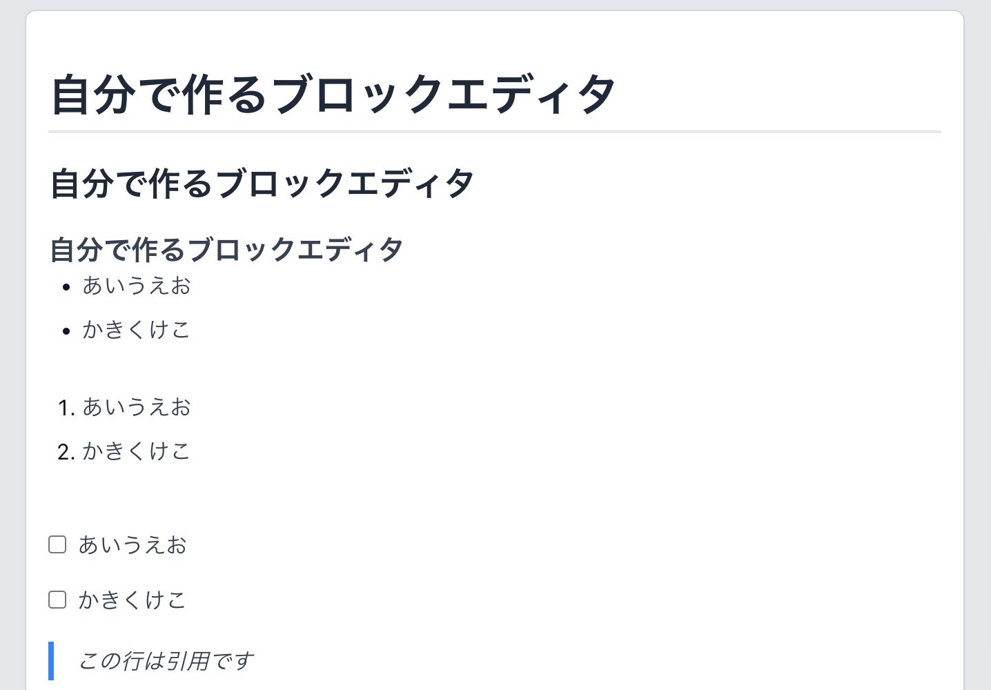 見出し、リスト、引用、コードブロック、画像挿入、YouTube埋め込み